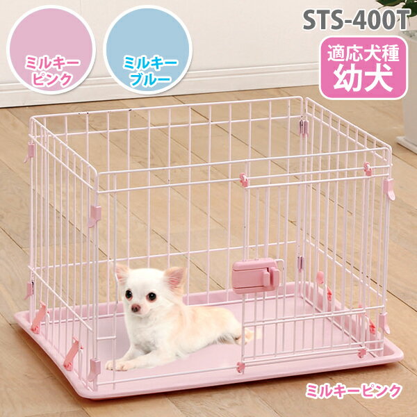 トレーにはサークルのガタツキを防ぐバックルと床傷を防止するゴム脚が付いています! ●商品サイズ(約):幅60×奥行45×高さ40.4cm ●重量(約):3.4kg ●入口サイズ(約):幅20×奥行33cm ●トレー内寸(約):幅53×奥行38cm ●適応シーツサイズ:ワイドサイズ(44×59cm) ●適応犬種:幼犬 ●材質 線材:スチール(エポキシ粉体塗装) トレー:塩化ビニル樹脂 ロック:ABS樹脂 ●カラー:ミルキーピンク、ミルキーブルー ◇◆アイリスオーヤマ システムサークルトレー付き◆◇ ★