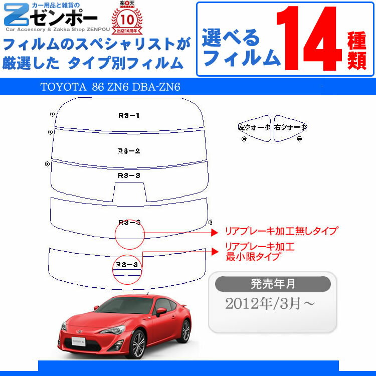 カット済みカーフィルム トヨタ(TOYOTA)86 ZN6 DBA-ZN6 スバル(SUBARU) BRZ ZC6 DBA-ZC6 専用 断熱〜ノーマルまで! 車 車用 カー用品 カーフィルム カット済み フィルム フイルム リヤーセット/リアーセット スモークフィルム ミラー/シルバー/断熱 通販 楽天 後期 パーツあす楽について注意点がございます。