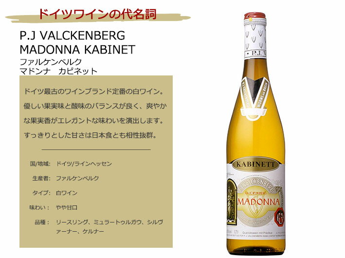 【送料無料】[白] ファルケンベルク マドンナ カビネット P.J VALCKENBERG MADONNA KABINET 【750ml×12本】